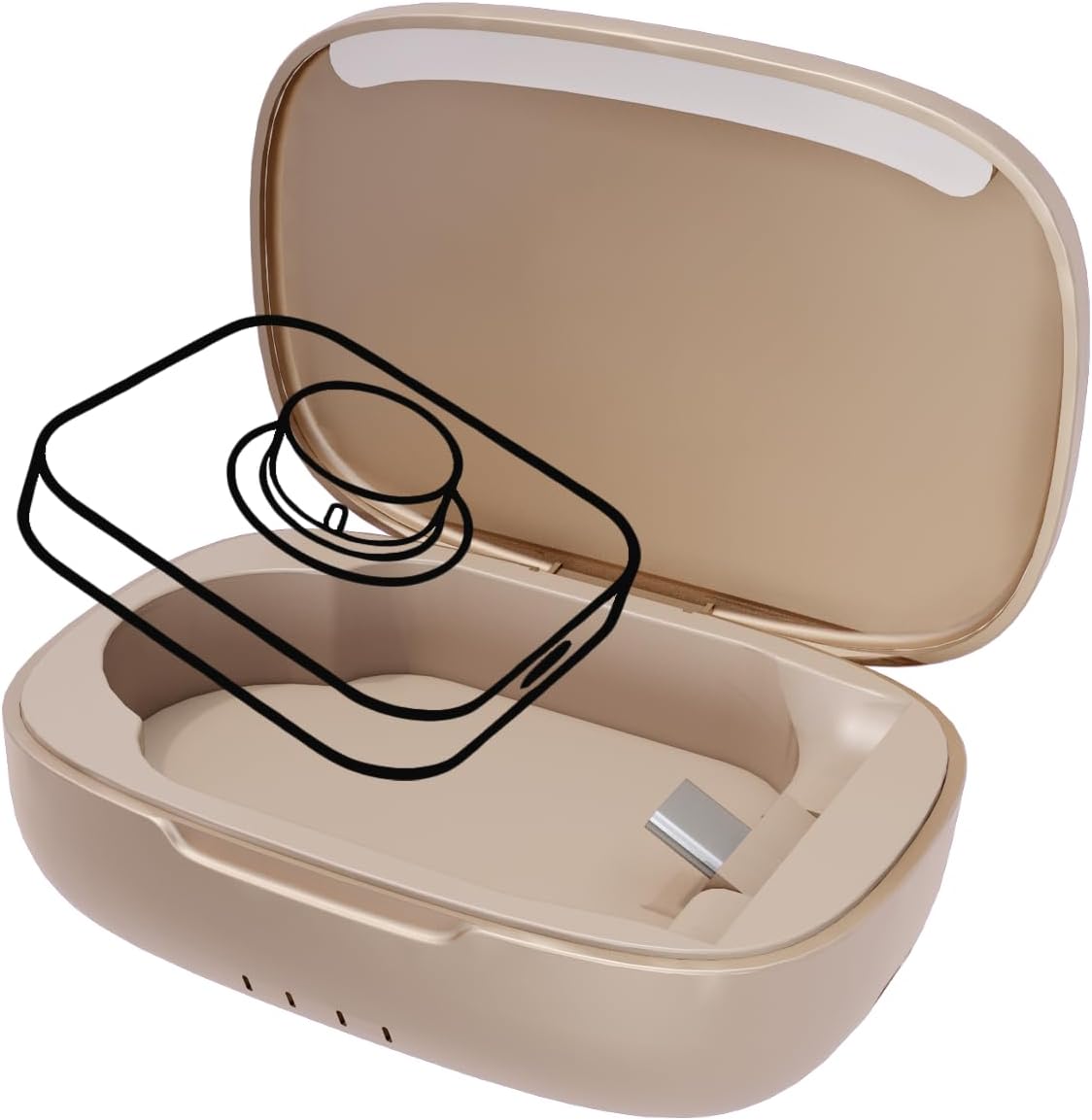 Travel was the real test. I packed the closed case in my carry-on with the ring inside. No loose cables, no worries about damage. It came through security without issue and kept charging perfectly on hotel nightstands. One minor note: the gold finish picked up a few faint fingerprints, but a quick wipe fixed it.